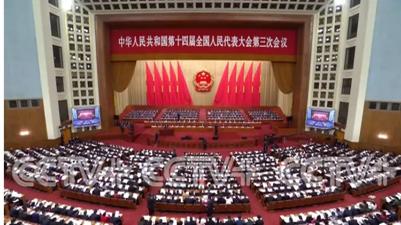 Chinese Premier Li Qiang delivered the report on behalf of the State Council at the opening meeting of the third session of the 14th National People’s Congress (NPC) at the Great Hall of the People in Beijing on Wednesday morning.